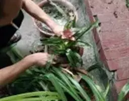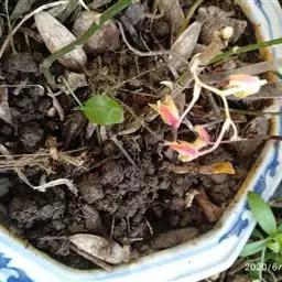 通常选用四壁多孔的塑料或陶瓷花盆,用碳根、泥炭藓、树皮块、木炭块等作盆栽材料。根据兰苗的大小,选择不同规格的花盆,但不宜用大盆栽小苗口上述栽好材料在使用前必需在清水中浸泡1天以上备用。盆底要多垫大瓦片或碎砖块,深度至盆底约1/3处,然后将兰苗放于盆中央,并在一旁插一细竹竿以固定兰苗,再填入其他栽培材料,注意根与根之间用材料隔开。
