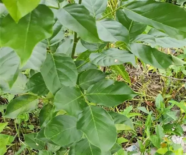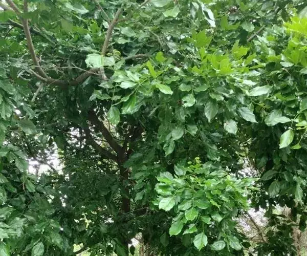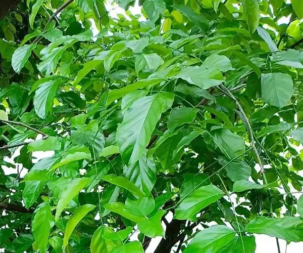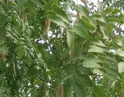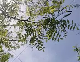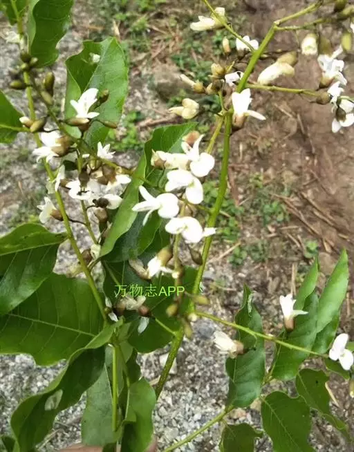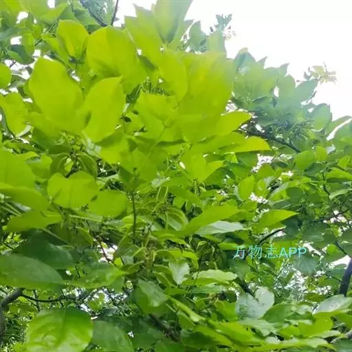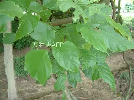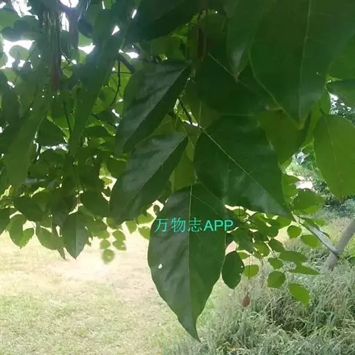 乔木,高8-15米。嫩枝通常无毛,有时稍被微柔毛,老枝密生灰白色小皮孔。羽状复叶长20-25厘米;小叶2-3对,近革质,卵形,阔椭圆形至长椭圆形,长5-10厘米,宽4-8厘米,先端短渐尖或圆形,基部宽楔形、圆形或近截形;小叶柄长6-8毫米。