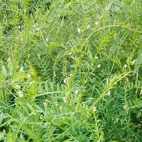 总状花序腋生,长15-20厘米,通常2朵花簇生于花序总轴的节上;花梗长5-8毫米,在花萼下有卵形的小苞片2枚;花萼长约3毫米,萼齿不明显,外面略被锈色短柔毛,边缘尤密;花冠白色或粉红色,长12-14毫米,各瓣均具柄,旗瓣背面被丝毛,边缘内卷,龙骨瓣略弯曲。荚果长4-5厘米,宽1.5-2.5厘米,表面有不甚明显的小疣凸,顶端有微弯曲的短喙,不开裂,沿缝线处无隆起的边或翅,有种子1粒;种子肾形。花期5-6月,果期8-10月。