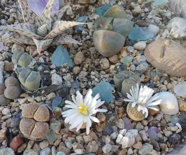 生石花原产南非及纳米比亚的岩缝及半沙漠地带。 世界多地有栽培,供观赏用。