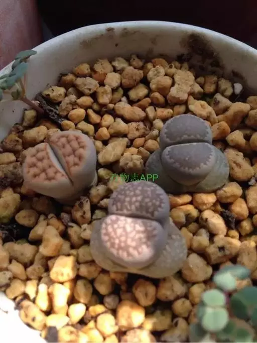 生石花形态别致,株型小巧,高度肉质,叶形、叶色及花色都富 Lithopsaucampiae“openwindow” 于变化,而栽培又有一定难度。显得既可爱又神秘,也以此成为多肉植物爱好者的收集热点。 又因其形如彩石,色彩丰富,享有“有生命的石头”的美称。