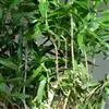 (小花龙血树)DracaenacambodianaPierreexGagnep,百合科Liliaceae,乔木状,高3~4m,茎不分枝或分枝,树皮带灰褐色,幼枝有密环状叶痕。叶聚生于茎、枝顶端,几乎互相套迭,剑形,薄革质,长达70厘米,宽1.5-3厘米,向基部略变窄而后扩大,抱茎,无柄。圆锥花序长在30厘米以上;花序轴无毛或近