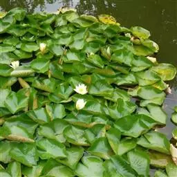 白睡莲为睡莲科睡莲属的多年生水生草本植物。根茎横走;叶飘浮水面革质,基部型片稍重叠,…