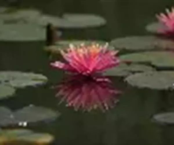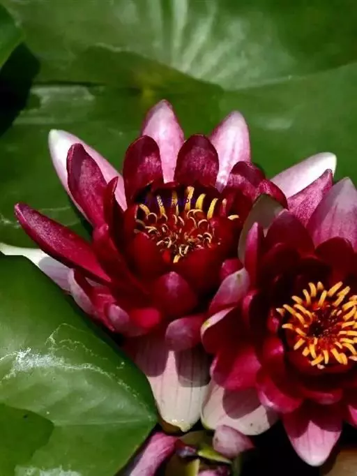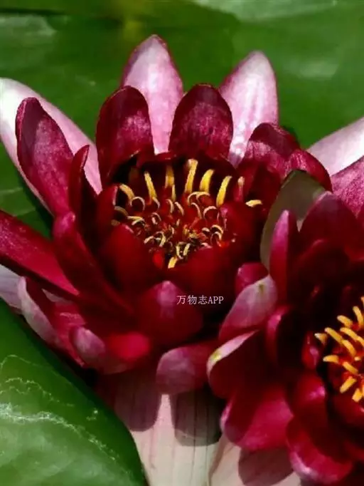 红花睡莲,多年生浮水植物。叶浮于水面,卵形,革质,表面绿色,背面紫红色,幼叶红色,花昼开夜合,浮于…