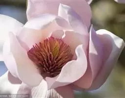 花大,直径30-34厘米,玫瑰红色,芳香;花梗略和叶柄等长;萼片披针形,长3-5厘米,脱落或花期后腐烂;花瓣20-25,白色,卵状矩圆形,长3-5.5厘米,外轮比萼片稍长;花托圆柱形;花药先端不延长,花粉粒皱缩,具乳突;柱头具14-20辐射线,扁平。