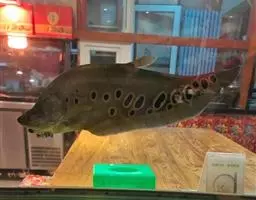 松江鲈,头扁平,向后渐侧扁。头部有棱无棘,前鳃盖骨有4棘,上棘最大,上弯。背鳍连续,有一深凹。口大…