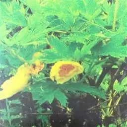 牡丹根腐病:在温暖的河谷平原见有发生。染病植株长势衰弱,甚至整株死亡。病源主要为腐皮镰刀菌另有其他镰刀菌和蜜环菌的复合侵染。蛴螬等地下害虫为害造成的伤口有利于病菌感染。一般4月初牡丹展叶后即显症状。