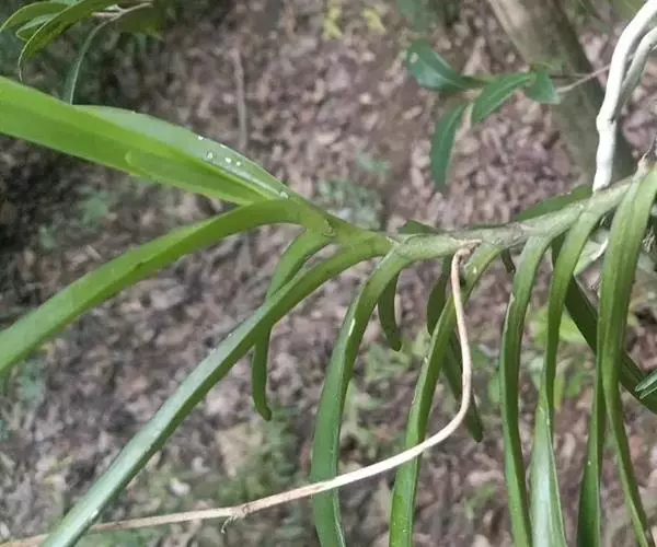 大叶隔距兰 Garay):茎直立,粗壮,长5-20厘米,连同叶鞘粗2-2.5厘米,具分枝、长而粗壮…