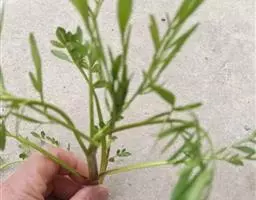 叶极小,下部的长5-6厘米,小叶卵形,长2-5毫米;上部的长5-9厘米、小叶披针形,长10-14毫米,全缘。