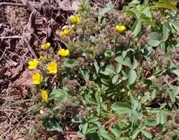 蛇含委陵菜(学名:Potentilla kleiniana Wight et Arn.)是蔷薇科委陵菜属植物,一年生、二年生或多年生宿根草本。多须根。花茎上升或匍匐,常于节处生根并发育出新植株,长10-50厘米,被疏柔毛或开展长柔毛。聚伞花序密集枝顶如假伞形,花梗长1-1.5厘米,密被开展长柔毛,下有茎生叶如苞片状。瘦果近圆形,一面稍平,直径约0.5毫米,具皱纹。花果期4-9月。