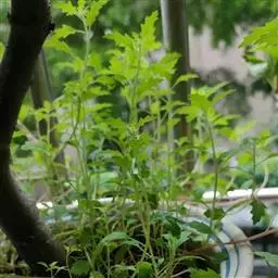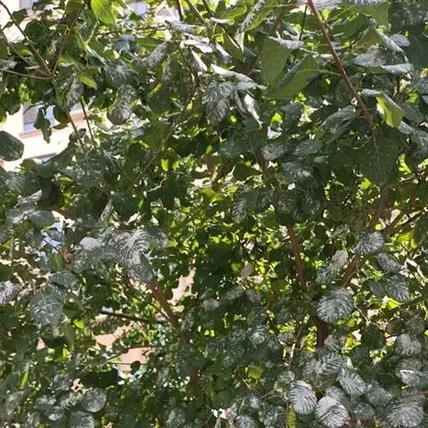 魏紫株型中高,半开展,美观大方。枝较粗壮,一年生枝较短,节间较短。中型圆叶,总叶柄长约10厘米,斜伸;小叶卵圆形,缺刻多,端钝,边缘带浅紫红色晕,叶脉下凹,叶面粗糙,深绿色。生长势强,成花率高,分枝多,萌蘖枝多。