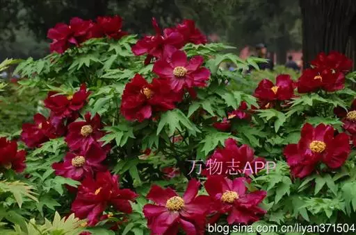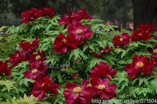 魏紫(学名:Paeonia suffruticosa 'Wei Purple'):落叶灌木,株型中高,半开展。枝较粗壮,一年生枝较短,节间较短。出自五代时期洛阳魏仁博家,具有极致的重瓣之美。是名贵的牡丹花品种,花紫红色,荷花形或皇冠形。花期长,花量大,花朵丰满,被推为“花后”。给人以温馨热烈的美感,增添成功、喜庆、富贵、吉祥的感觉,观赏性极强。