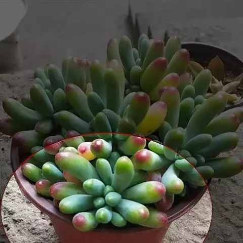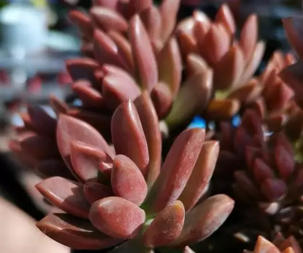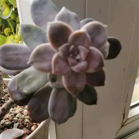 景天科风车草属的多肉植物,原产于墨西哥。株形和风车草属胧月极为相似。花瓣被蜡,叶排成延长的莲座状被白粉。平时为绿色日照充足时叶色朱红带褐色,叶呈瓜子型叶末较尖,开黄色小花,星状。