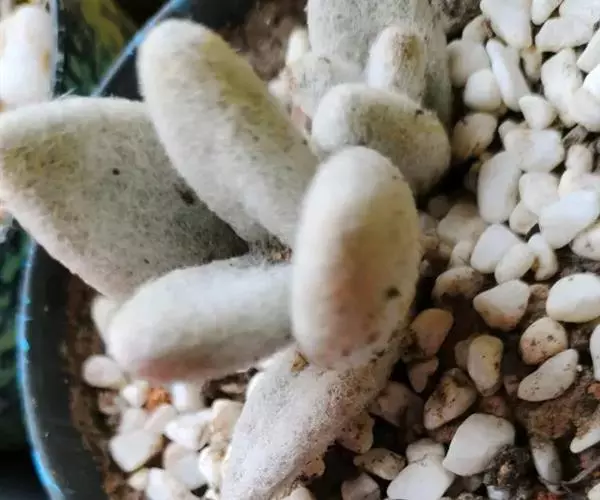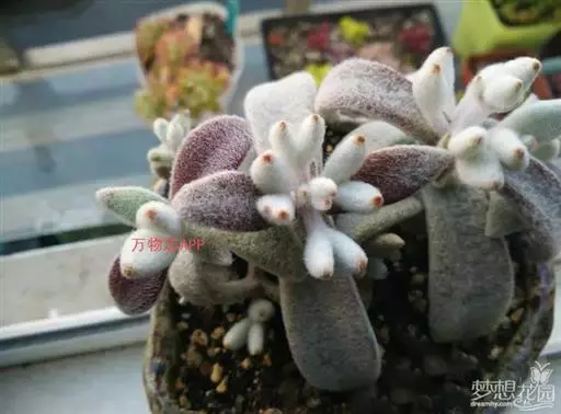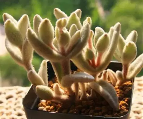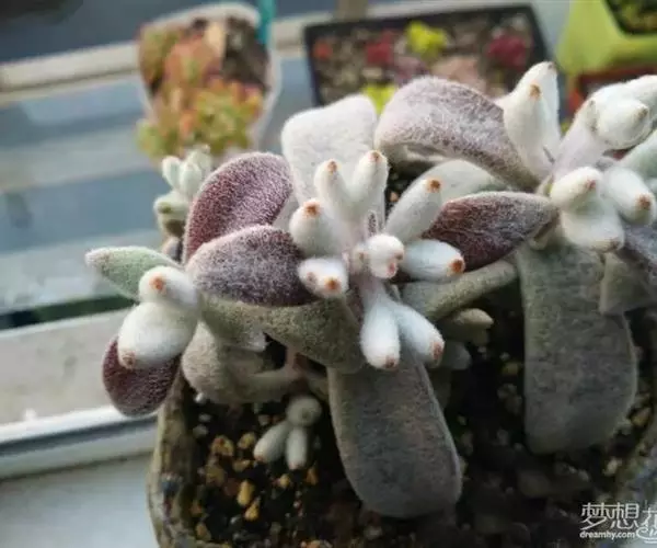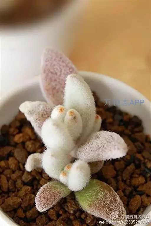 4、福兔耳栽培中要避免长期雨淋,不然容易腐烂,白毛弄到水也不容易干。因为长的相对较慢,2~4年换盆一次就差不多了,初春头次浇水前进行换盆。