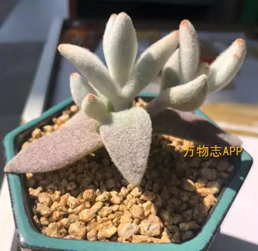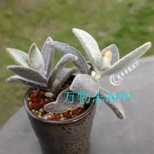 福兔耳是景天科伽蓝菜属的多肉植物,野外分布于非洲马达加斯加中部。植株叶片对生,长梭型,…