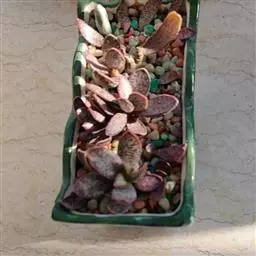 1、福兔耳就是养在全日照的阳光房里。生长期需保持土壤微湿,避免积水。土壤就用了煤渣混合泥炭、少量珍珠岩,比例大概6:3:1,土表铺设了河沙。