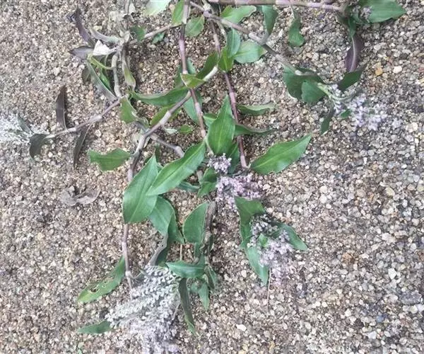 蒴果卵圆状,长宽2毫米,侧扁。种子半椭圆状,灰蓝色,有从胚盖发出的辐射纹;胚盖白色,位于背面。花果期7-11月 。
