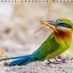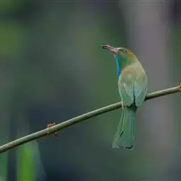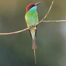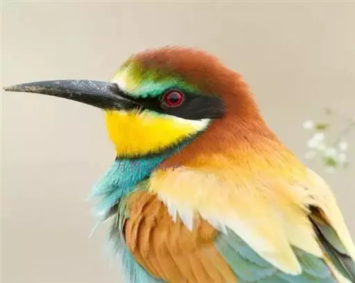 黄喉蜂虎(学名:Merops apiaster)属中型鸟类,体长23-30厘米。喉黄色,其下有一窄的黑色胸带;胸带以下的整个下体蓝绿色。前额蓝白色,具一宽的黑色贯眼纹,头顶至后颈暗栗色,尾蓝绿色,中央尾羽延长,明显突出于其他尾羽。翅上具淡栗色斑。嘴黑色,细长而尖,微向下弯曲,以各种昆虫为食。捕食多在空中,边飞翔边捕食。食物主要是昆虫,尤其爱吃黄蜂类。栖于山脚和开阔平原地区有树木生长的悬岩、陡坡及河谷地带。分布地中海周围至欧洲,西南亚,非洲,印度和中国。