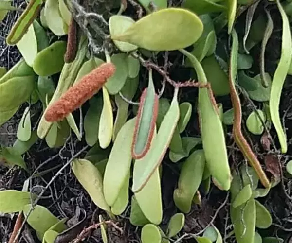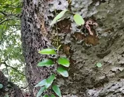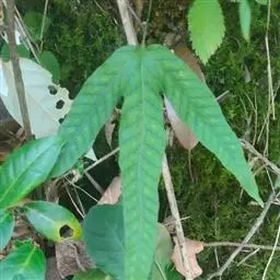 叶表面观:下表皮细胞垂周壁波状弯曲,平周壁具角质纹理,气孔不定式或不等式,副卫细胞4-6个。上表皮细胞垂周壁稍波状弯曲,平周壁具角质纹理,气孔极少。非腺毛单细胞,少数有2细胞,长66-206μm,常弯曲,外壁有疣状突起,顶端常具有一凸头。叶肉薄壁细胞中含草酸钙簇晶,直径20-33μm。