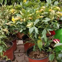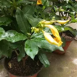 黄蝉属 生长期可充分浇水,空气干燥时要向植株喷水,否则会因空气过于干燥引起叶片卷皱。花后应对植株进行适当修剪,以促进分枝,控制植株高度,保持株形的优美。冬季移至室内阳光充足处,控制浇水,5℃以上可安全越冬。每年的春季对植株进行一次修剪,剪去过长枝、交叉枝以及其他影响株形的枝条。每1年至2年的春季换盆一次,盆土宜用疏松肥沃、含腐殖质丰富的土壤,可用腐叶土3份、园土2份、沙土1份的混合土栽种。