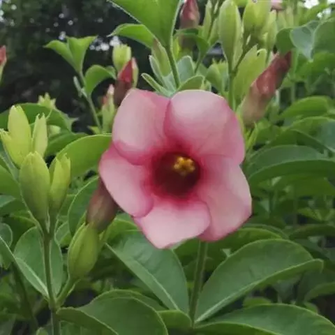 黄蝉原产美国南部及巴西,喜温暖湿润和阳光充足的环境,不耐寒。5月至8月的生长旺盛期,每10天左右施一次腐熟的稀薄液肥或复合肥,注意肥料中氮肥含量不宜过多,以免枝叶生长过旺而开花稀少。此外,栽培环境光线不足,也会造成这种现象,因此要尽量给予充足的阳光。