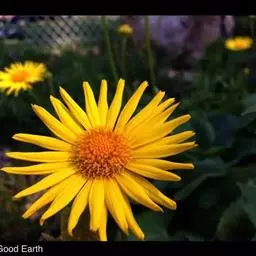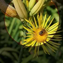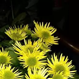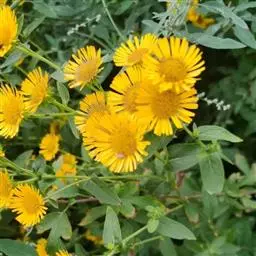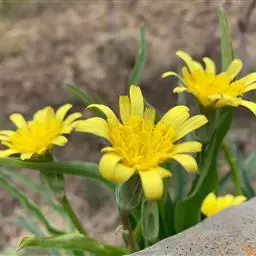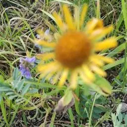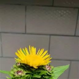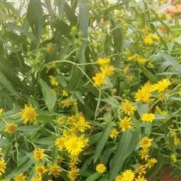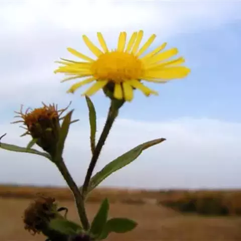头状花序单生于枝端,径2.5-3.5厘米。总苞半球形,径1-1.3厘米,长5-7毫米;总苞片近等长,外层叶质或上部叶质,线状披针形,有腺点,被柔毛;内层线状披针形,无毛,边缘宽膜质,有缘毛。舌状花较总苞长3倍,舌片黄色,线形,长约15毫米,顶端有3齿;管状花花冠长约3毫米,有披针形裂片,裂片有腺点;冠毛白色,约与花冠管部同长,有5个或稍多的微糙毛。瘦果近圆柱形,顶端截形,有10条深陷的纵沟,无毛。