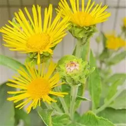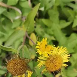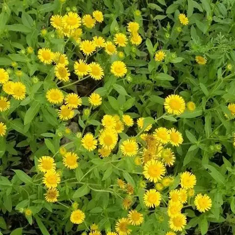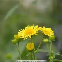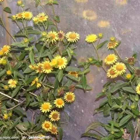 为菊科植物湖北旋覆花的干燥头状花序。生长于林下和山坡草地。分布于湖北、四川等省。与上种相似,叶矩圆状披针形至披针形,顶端渐尖,基部稍狭并扩大成圆耳形,抱茎。性状:与水朝阳花形态相近似。不同点为冠毛约与花冠管部等长,有5个或稍多的微糙毛 。