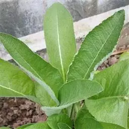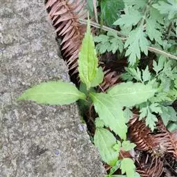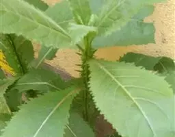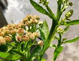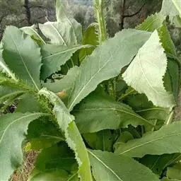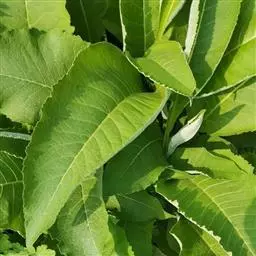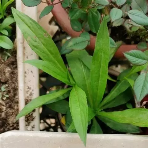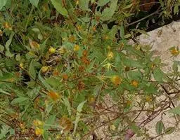 叶长圆状披针形至披针形,长6-10厘米,宽1.5-2.5厘米;下部叶较小,在花期枯萎,中部以上叶无柄,基部稍狭并扩大成圆耳形,抱茎,边缘有小尖头状疏锯齿,顶端渐尖,下面有黄色腺点,脉上有短柔毛,上面无毛;中脉和7-8对侧脉在下面稍高起,网脉明显。