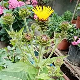 此种显然与水朝阳旋覆花 I. helianthus-aquatica C. Y. Wu ex Ling 接近,但叶形不同,冠毛约与花冠的细狭管部等长,有较少的微糙毛,且可能是后者的亚种或变种。