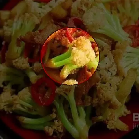 干锅花菜,是湘菜常见的一道菜,以花菜、秀珍菇、蘑菇、青红尖椒为主要食材,…