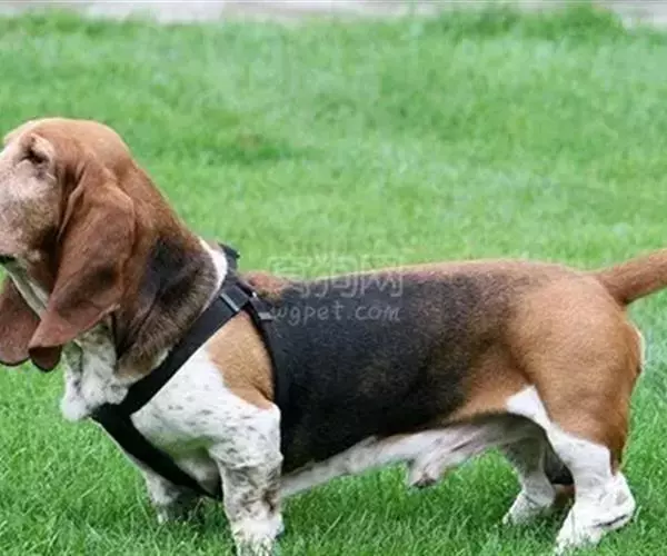 巴吉度犬 皮松弛而有弹性。明显的长毛是不符合标准的。