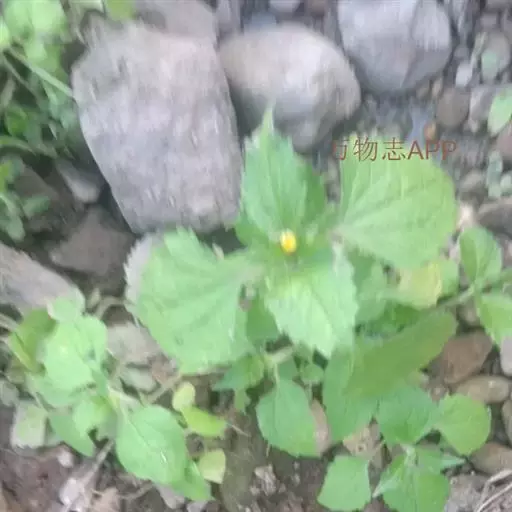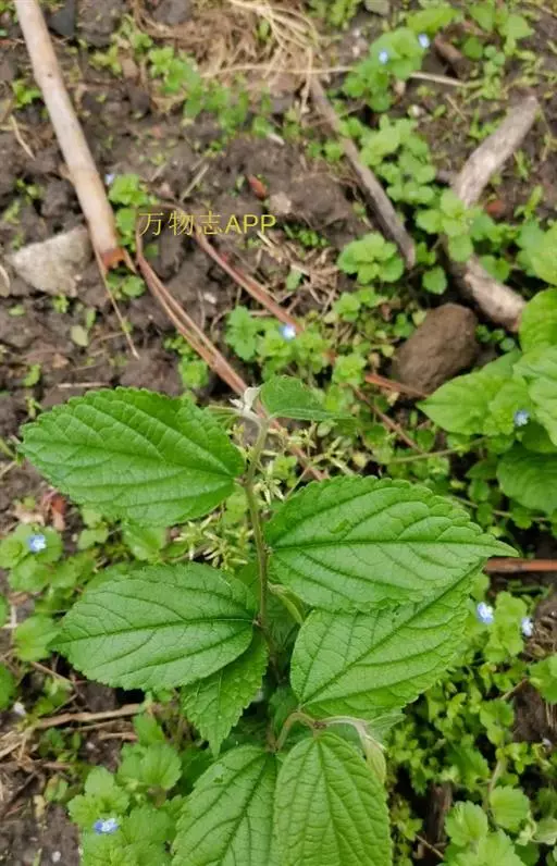 叶对生,卵形或长椭圆状卵形,长(1.5)2.5-5.5厘米,宽(0.6)1.2-3.5厘米,基部圆形、宽或狭楔形,顶端渐尖或钝,基出三脉或不明显五出脉,在叶下面稍突起,在上面平,有叶柄,柄长1-2厘米;向上及花序下部的叶渐小,通常披针形;全部茎叶两面粗涩,被白色稀疏贴伏的短柔毛,沿脉和叶柄上的毛较密,边缘浅或钝锯齿或波状浅锯齿,在花序下部的叶有时全缘或近全缘。