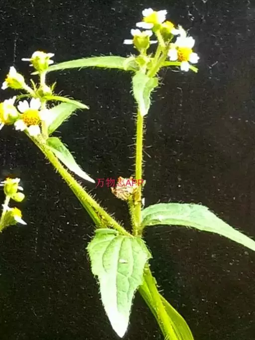 牛膝菊(拉丁学名:Galinsoga parviflora Cav.)是菊科,牛膝菊属一年生草本植物,高可达80厘米。茎纤细,叶对生,叶片卵形或长椭圆状卵形,有叶柄,头状花序半球形,有长花梗,总苞半球形或宽钟状,总苞片外层短,内层卵形或卵圆形,舌状花,舌片白色,筒部细管状,托片纸质,瘦果常压扁,7-10月开花结果。