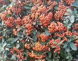灌木或小乔木,高达1-10米,枝条密集;小枝粗壮,圆柱形,幼时密被长柔毛,逐渐脱落,当年枝条紫褐色,老枝灰褐色,有稀疏不显明皮孔;冬芽长卵形,先端短渐尖,红褐色,近于无毛或在鳞片边缘有短柔毛。叶片长圆形、长圆披针形或倒披针形,长5-12厘米,宽2-4.5厘米,先端急尖或突尖,基部楔形至宽楔形,全缘,上面中脉下陷,沿中脉被灰褐色柔毛,下面中脉突起,侧脉8-16对,不明显,沿中脉有稀疏柔毛;叶柄长1.2-2厘米,被柔毛,逐渐脱落;托叶膜质,钻形,长5-6毫米,早落。复伞房花序,直径5-9厘米,密具多花;总花梗和花梗均被柔毛,花梗短,长2-4毫米;苞片与小苞片均膜质,卵状披针形,早落;花直径5-10毫米;萼筒外面有稀疏柔毛;萼片三角卵形,先端急尖,全缘,长2-3毫米,长不及萼筒之半,外被少数柔毛;花瓣近圆形,直径约4毫米,基部有短爪,白色;雄蕊20,花药紫红色;花柱5,大部分连合,柱头头状,比雄蕊稍短;子房顶端被绒毛。果实近球形,桔红色,直径7-8毫米;萼片宿存,直立;种子长椭圆形。花期5-6月,果期9-10月。