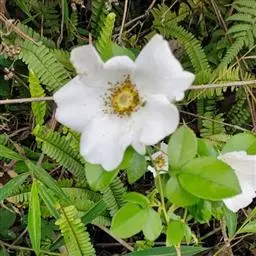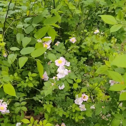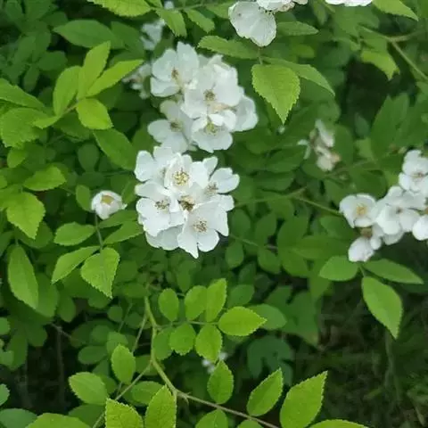 白蔷薇:直立灌木,高约2米;小枝有不等钩状皮刺,有时混有刺毛。小叶通常5,稀7,宽椭圆形或卵形,…