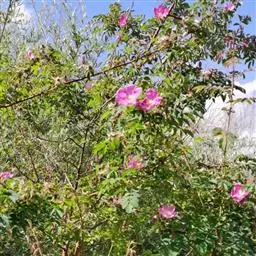 刺蔷薇(学名:Rosa acicularis Lindl.):灌木,高1-3米;小枝圆柱形,稍微弯曲,红褐色或紫褐色,无毛,有细直皮刺。小叶片宽椭圆形或长圆形。花单生或2-3朵集生,苞片卵形至卵状披针形,先端渐尖或尾尖,边缘有腺齿或缺刻,花梗无毛,密被腺毛;萼筒长椭圆形,光滑无毛或有腺毛;萼片披针形,花瓣粉红色,芳香,倒卵形,先端微凹,基部宽楔形;花柱果梨形、长椭圆形或倒卵球形,红色,有光泽。花期6-7月,果期7-9月。