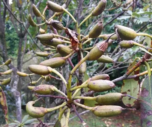 羊毛杜鹃:常绿灌木,小乔木,高3-6米;小枝粗壮,直径7-9毫米,密被黄锈色绒毛,老枝无毛。叶厚革质,…