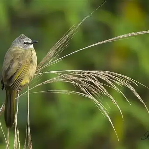 灰短脚鹎,体长19-22厘米。头顶和短的羽冠黑色,上体暗灰色,耳羽灰褐色,两翅表面橄榄绿黄色。…