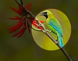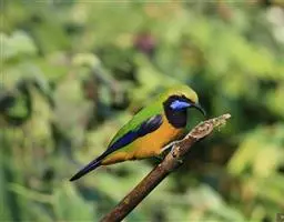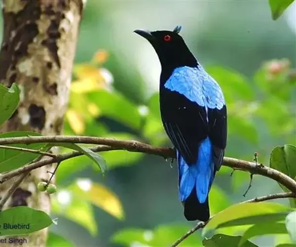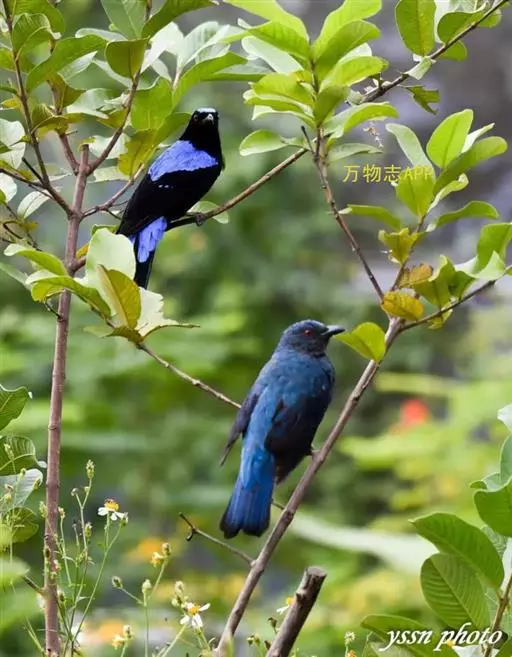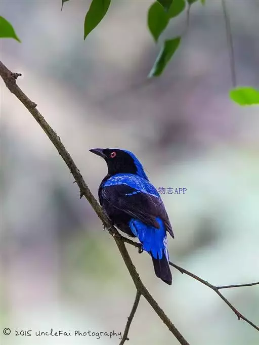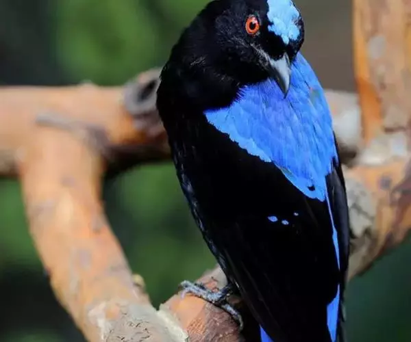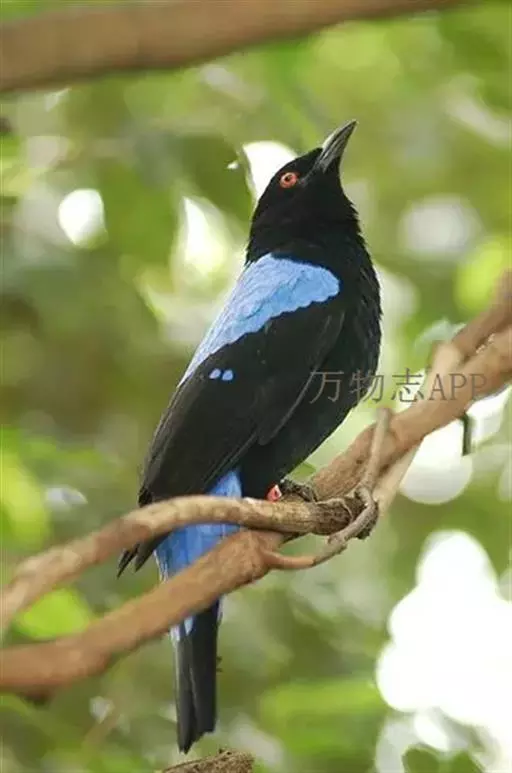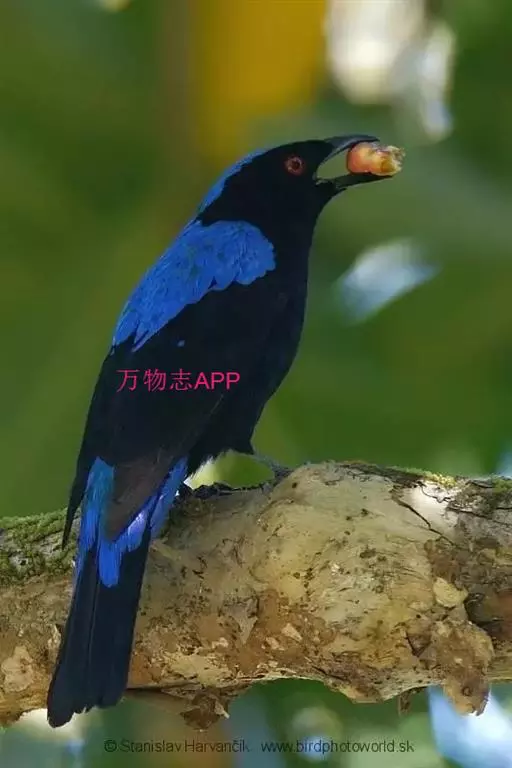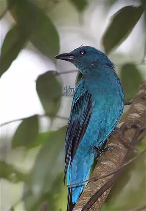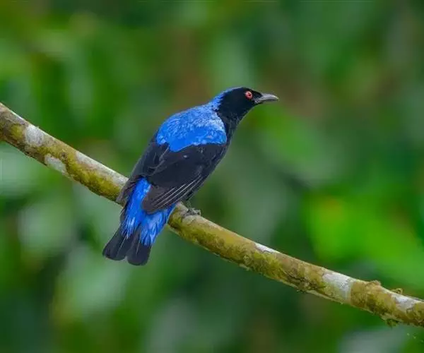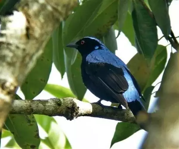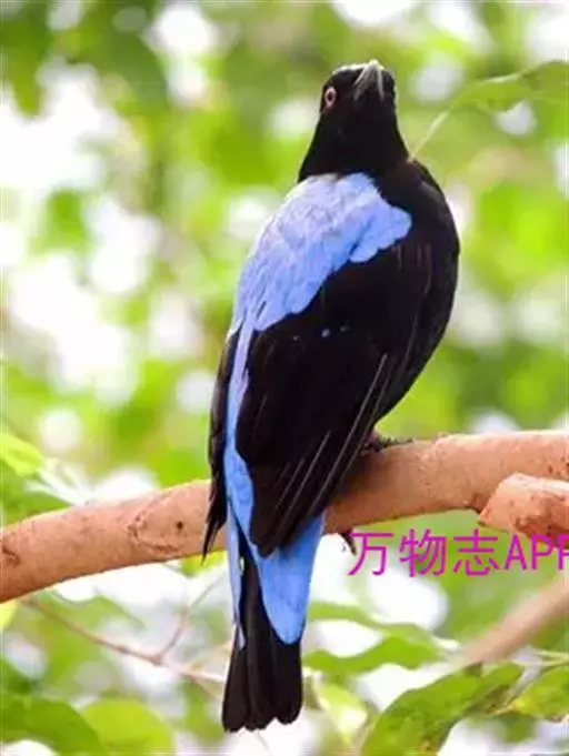 和平鸟(学名:Irena puella)中型鸟类,体长24~28厘米。眼红色,嘴、脚黑色。雄鸟从头顶到尾上覆羽等整个上体辉蓝色具紫色光泽,其余体羽黑色。雌鸟通体铜蓝色,仅飞羽黑褐色。