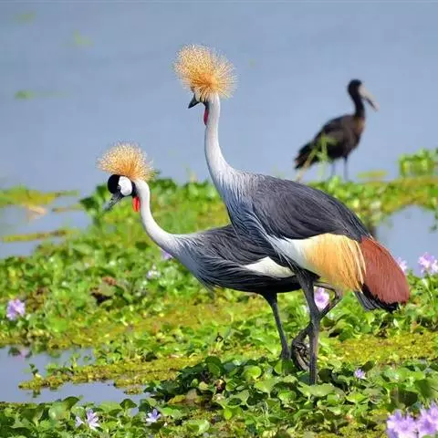 凤头雀莺:小型鸟类。体长9-10厘米,雄鸟呈毛茸茸的紫色和绛紫色,顶冠淡紫灰色,额及凤头白色,尾全蓝。…