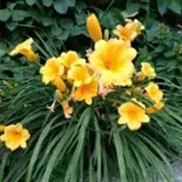 金娃娃萱草:是萱草的人工栽培的园艺品种。地下具根状茎和肉质肥大的纺锤状块根。叶基生,条形,排成两列,…