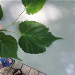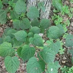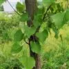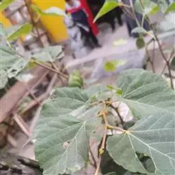 乔木,高10米,树皮淡灰色,有不规则薄片状脱落;嫩枝无毛,顶芽卵形,无毛。叶阔卵形或圆形,长4-6厘米,宽3.5-5.5厘米,先端渐尖,常出现3裂,基部微心形或斜截形,上面无毛,下面仅脉腋内有毛丛,侧脉4-5对,边缘有粗锯齿,齿尖突出;叶柄长2-3.5厘米,无毛,纤细。