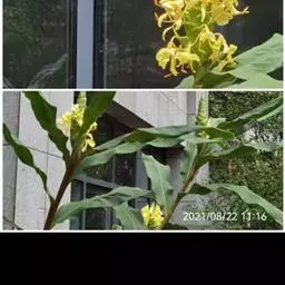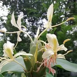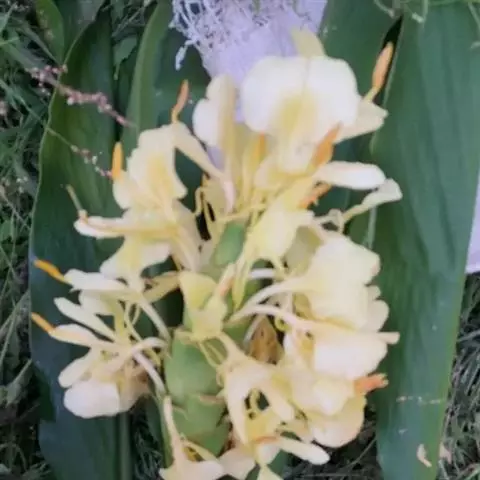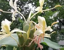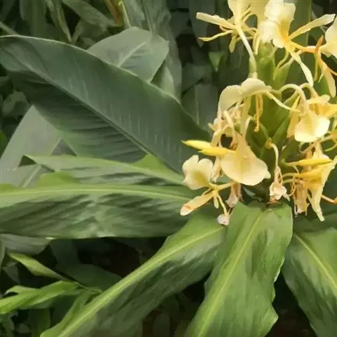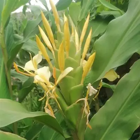 滇姜花(学名:Hedychium yunnanense Gagnep.)是姜科、姜花属陆生或附生草本植物,茎粗壮。叶片卵状长圆形至长圆形,两面均无毛,顶端具尾状尖头,基部渐狭成槽状的短柄;叶舌长圆形,穗状花序,苞片披针形,花萼管状,顶端不明显的齿,有缘毛;花冠管纤细,裂片线形,侧生退化雄蕊长圆状线形,基部收窄,较花冠裂片稍短,唇瓣倒卵形,柱头具缘毛;子房被疏柔毛。蒴果具钝三棱,种子多数,红色、9月开花。