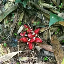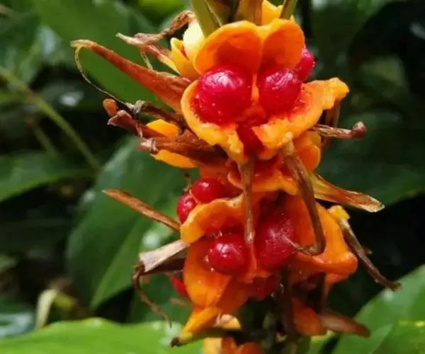 蒴果具钝三棱,直径12-14厘米,无毛;种子多数,具红色、撕裂状假种皮。花期:9月。