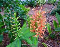 穗状花序长达20厘米;苞片披针形,长1.5-2.5厘米,内卷,无毛,内生一花;花萼管状,长1.7-2.8厘米,顶端具不明显的钝三齿,有缘毛;花冠管纤细,长3.5-5厘米,裂片线形,长2.5-3厘米;侧生退化雄蕊长圆状线形,基部收窄,较花冠裂片稍短,但较阔;唇瓣倒卵形,长约2厘米,2裂至中部,基部具瓣柄;花丝长3.5-4厘米,花药长1-1.2厘米;柱头具缘毛;子房被疏柔毛。