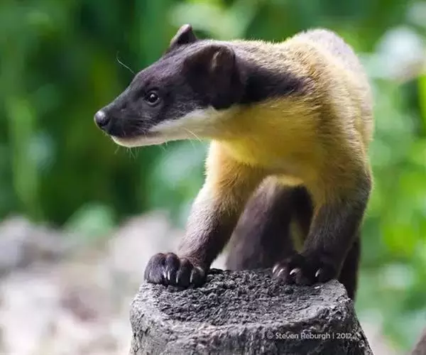 黄喉貂(学名:Martes flavigula):共有10个亚种,体长56-65厘米,尾长38-43厘米,体重约2-3千克。因前胸部具有明显的黄橙色喉斑而得名。耳部短而圆,尾毛不蓬松,体形细长,大小如小狐狸。耳部短而圆,尾毛不蓬松。体形柔软而细长,呈圆筒状。头较为尖细,略呈三角形;圆耳朵;腿较短,四肢虽然短小,但却强健有力,前后肢各有5个趾,趾爪粗壮弯曲而尖利。由于它喜欢吃蜂蜜,因而又有蜜狗之称。