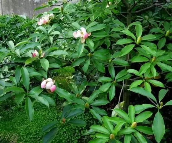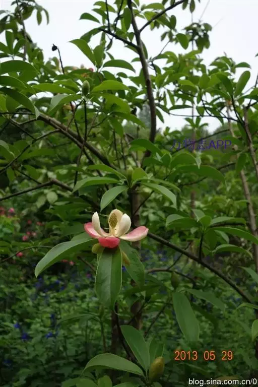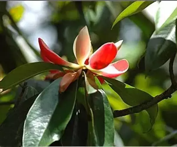 常绿乔木,高达26米,胸径80厘米,树皮灰白平滑。单叶互生薄革质,倒卵形,窄椭圆形或窄倒卵形,长10-20厘米,宽3.5-6.5厘米,先端短尖或渐尖,基部楔形,全缘,长10-20厘米,宽3.5-6.5厘米,直径2厘米,花被9片,乳白色或乳黄色,内质,稍厚。聚合果卵形,有种子5-6枚。花期4-5月,果熟期9-10月,成熟时,假种皮红色。