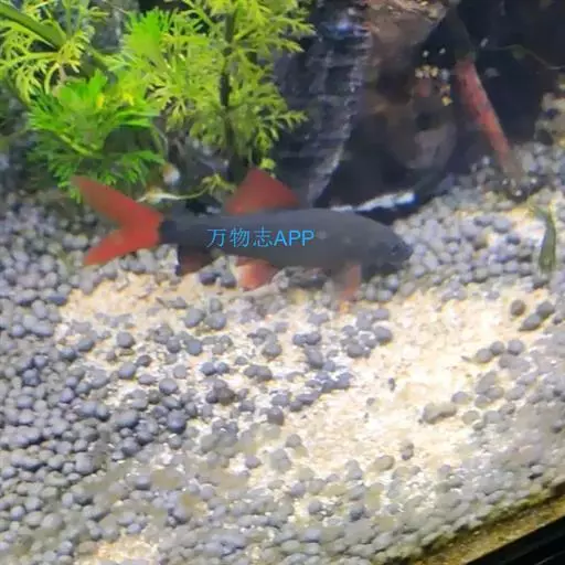 彩虹鲨 彩虹鲨,来自泰国的彩虹鲨在热带鱼中算是中型偏大的品种,它体长可达 14 厘米,身体呈纺锤形,尾鳍叉形,全身为黑墨色,尾鳍呈金红色。红与黑置于一体,色彩分明,别具一格。彩虹鲨的另一标志是背鳍特别宽大,嘴上有二根胡须。 体延长而侧扁。腹部轮廓较为平坦。口前位,吻端具短须。背鳍高且呈三角形,位于鱼体之中后方,整体看来类似鲨鱼之体型。体色一致为黑色,雄鱼体色较深。各鳍均呈深黑色,唯尾鳍为鲜橘红色,胸鳍则淡色,或微橘黄色。最大体长可达12公分。体高似梭形,长5~6厘米。