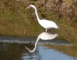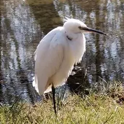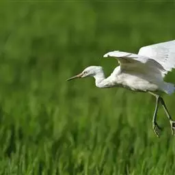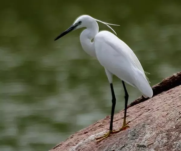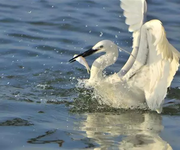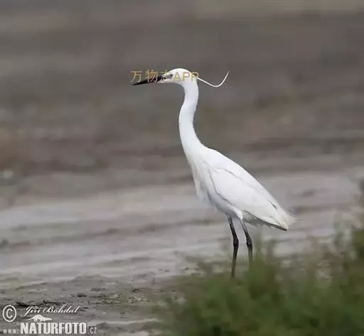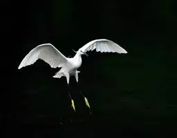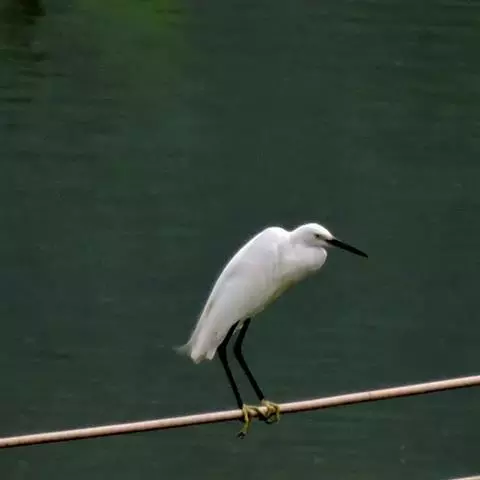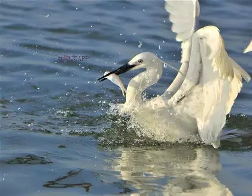 小白鹭(学名:Egretta garzetta):体长52-68厘米,为中型涉禽,全身体羽颇似大、中白鹭,体形纤瘦,全身白色。夏羽枕部有两根细长饰羽,前颈和背着生蓑羽。冬季饰羽及蓑羽脱落。眼先裸皮夏季粉红色,冬季黄绿色。生殖期在枕部有两枚长羽,如双辫状。胸前亦簇生矛状长羽,但没有枕部冠翎长。背上蓑羽的先端均微向上卷曲。生殖期后,冠翎和蓑羽均脱落。眼黄色,嘴黑色,下嘴基部带苍白色,面部裸皮灰色,脚、腿黑色,趾上常杂有黄色。栖息于平原、丘陵和低海拔之湖泊、沼泽地带与滩涂地。以鞘翅目及鳞翅目幼虫、水生昆虫等动物性食物为食,也吃少量谷物等植物性食物。