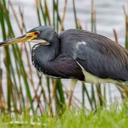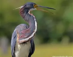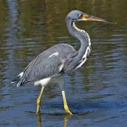 大蓝鹭是鹳形目鹭科的鸟类。共有5个亚种,体长137厘米。全身大部分羽毛呈灰蓝色羽毛,…